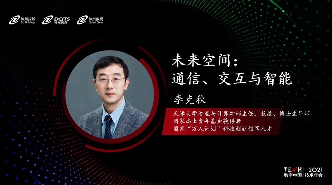 天津大学李克秋教授在“未来空间:通信、交互与智能”主题分享中谈道“以先进网络、大数据和人工智能为代表的技术发展,驱动着以人为核心的生存/生态空间革新。从数字孪生,到数字原生,再到虚实相生的元宇宙,未来空间将开放包容人、物、服务等诸多要素,以各要素间的互联和协调为基础,为目标提供沉浸式自动化的服务,无限放大空间效能。
